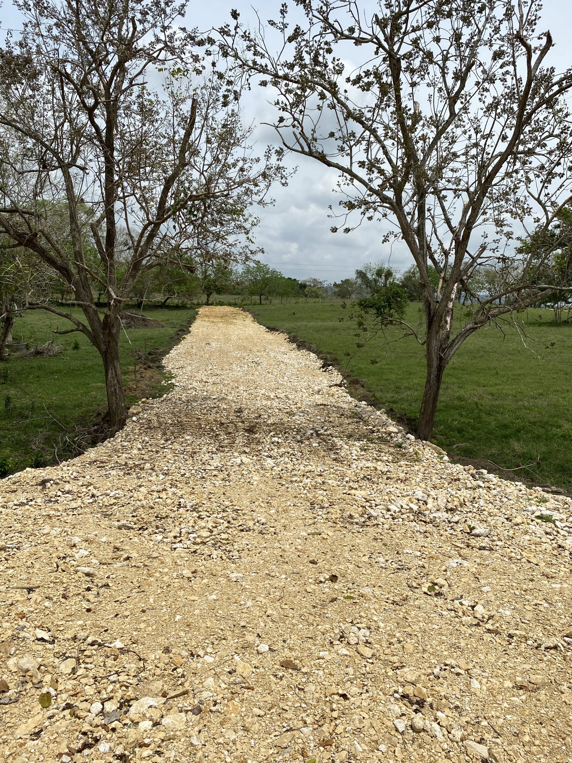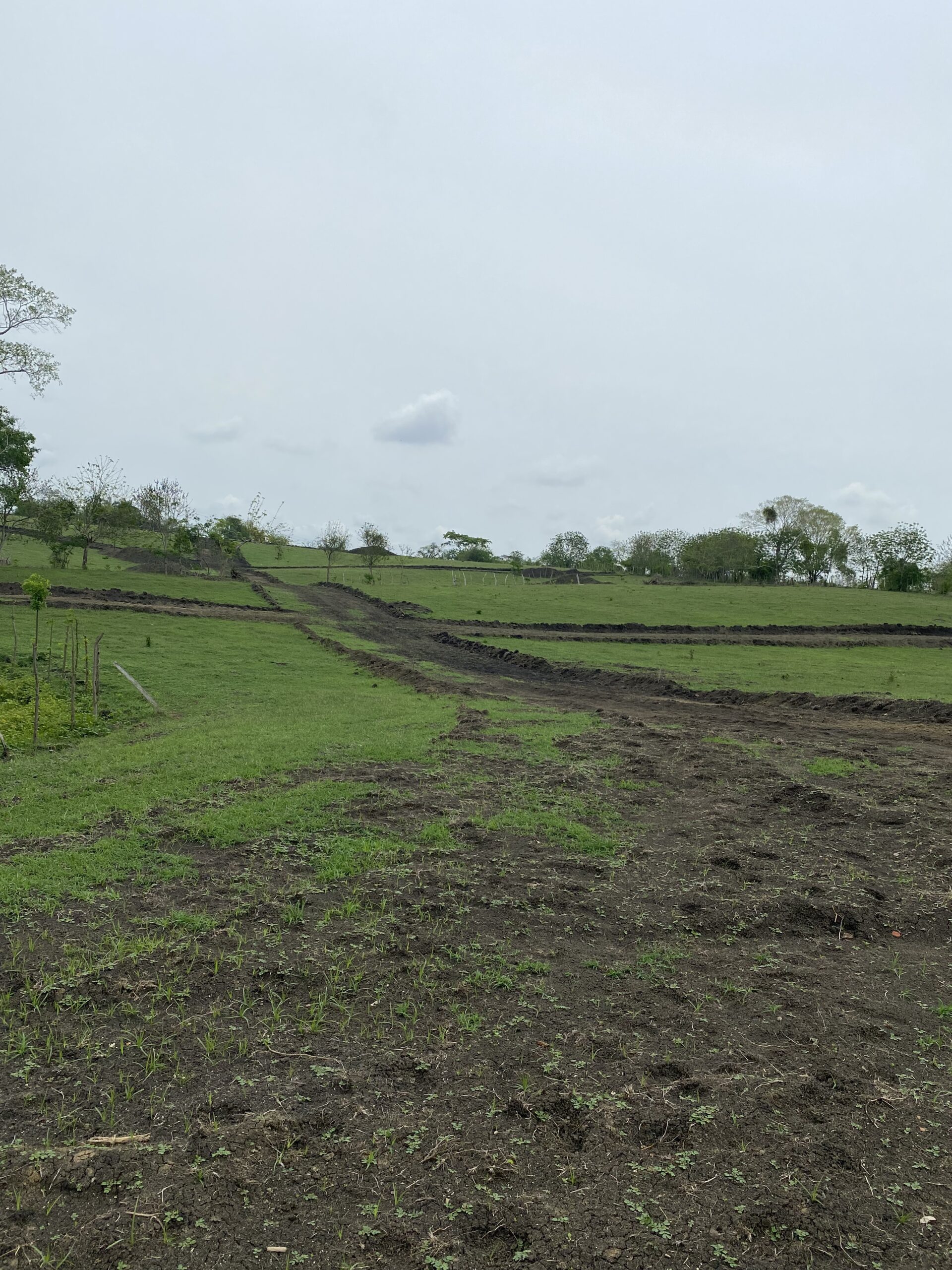 Zona de parqueos comunes, hechos en zahorra compactada con bordillos y cunetas en concreto.